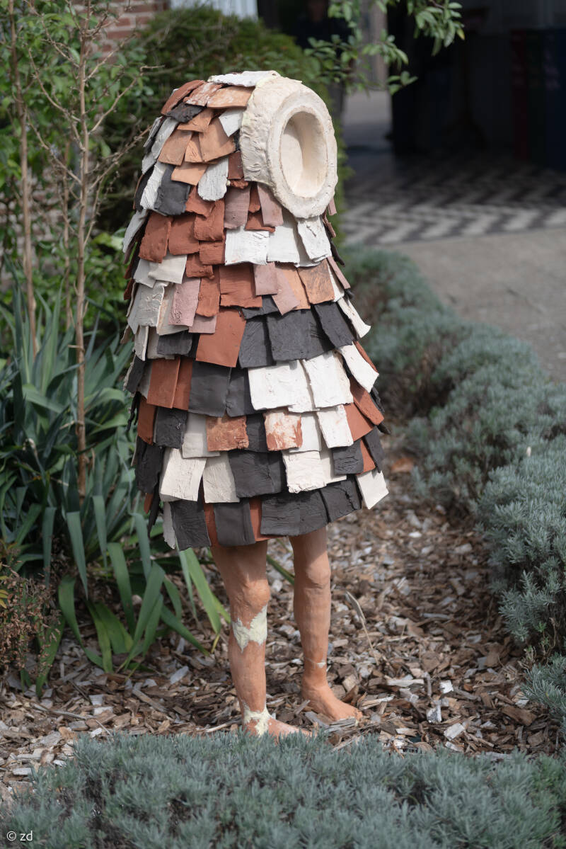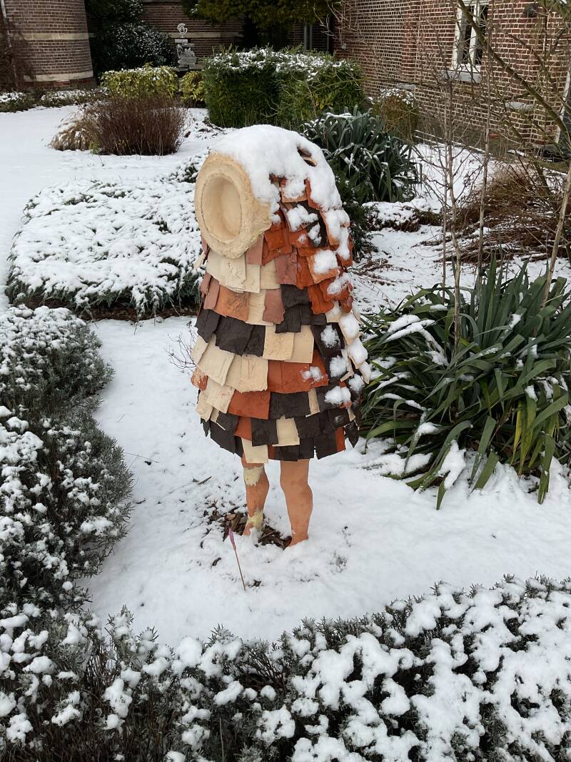 Mijn bijdrage bestaat uit een kleine zwarte yurt, waarin een met compost gevulde gresbuis. Op de aarde ligt een amorfe betonnen vorm. Twee pompoenplantjes werden er naast geplant. Regen, zon en storm beïnvloeden het werk. Het zwart verkleurt. De aarde zakt weg, de pompoenplanten groeien, dragen vruchten en verslensen.